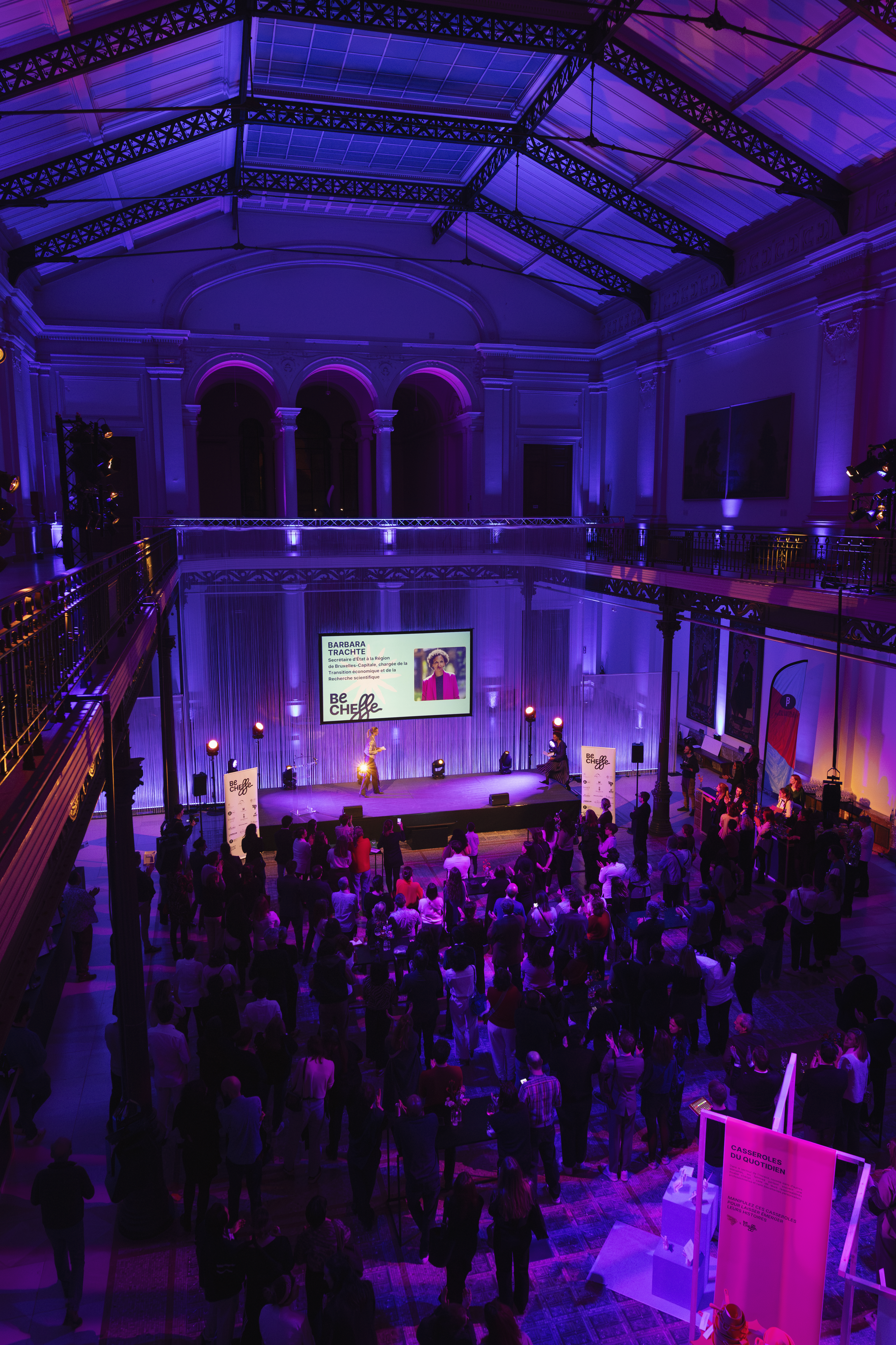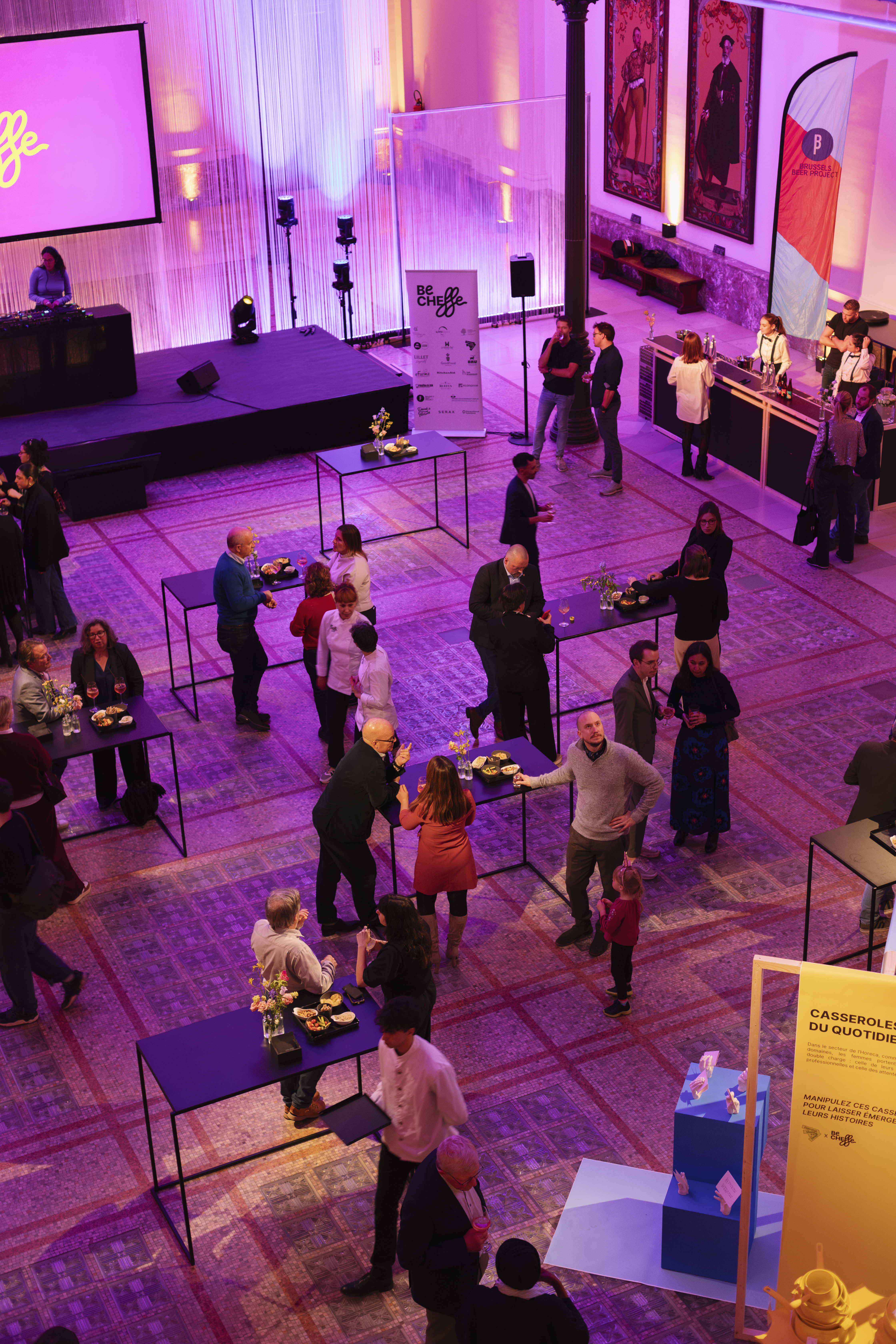 Nous avons collaboré avec la Fédération Horeca pendant deux éditions pour donner vie à Be Cheffe, un concours visant à valoriser la place des femmes cheffes dans le secteur de l’horeca. Notre intervention a couvert l’ensemble de la production : implantation et agencement du lieu, sélection et suivi des fournisseurs, gestion des commandes, élaboration des rétroplannings et régie sur place. Nous avons également assuré le montage et le démontage des installations.